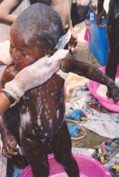 | This child, 1 1/2 years old, ceased to be able to walk when her mother hung a voodoo fetish around the child's neck. We broke the fetish off, gave the mother a "talking to,"and cast the evil spirits off of the child. Shortly afterwards, she began running around everywhere... Completely healed! |