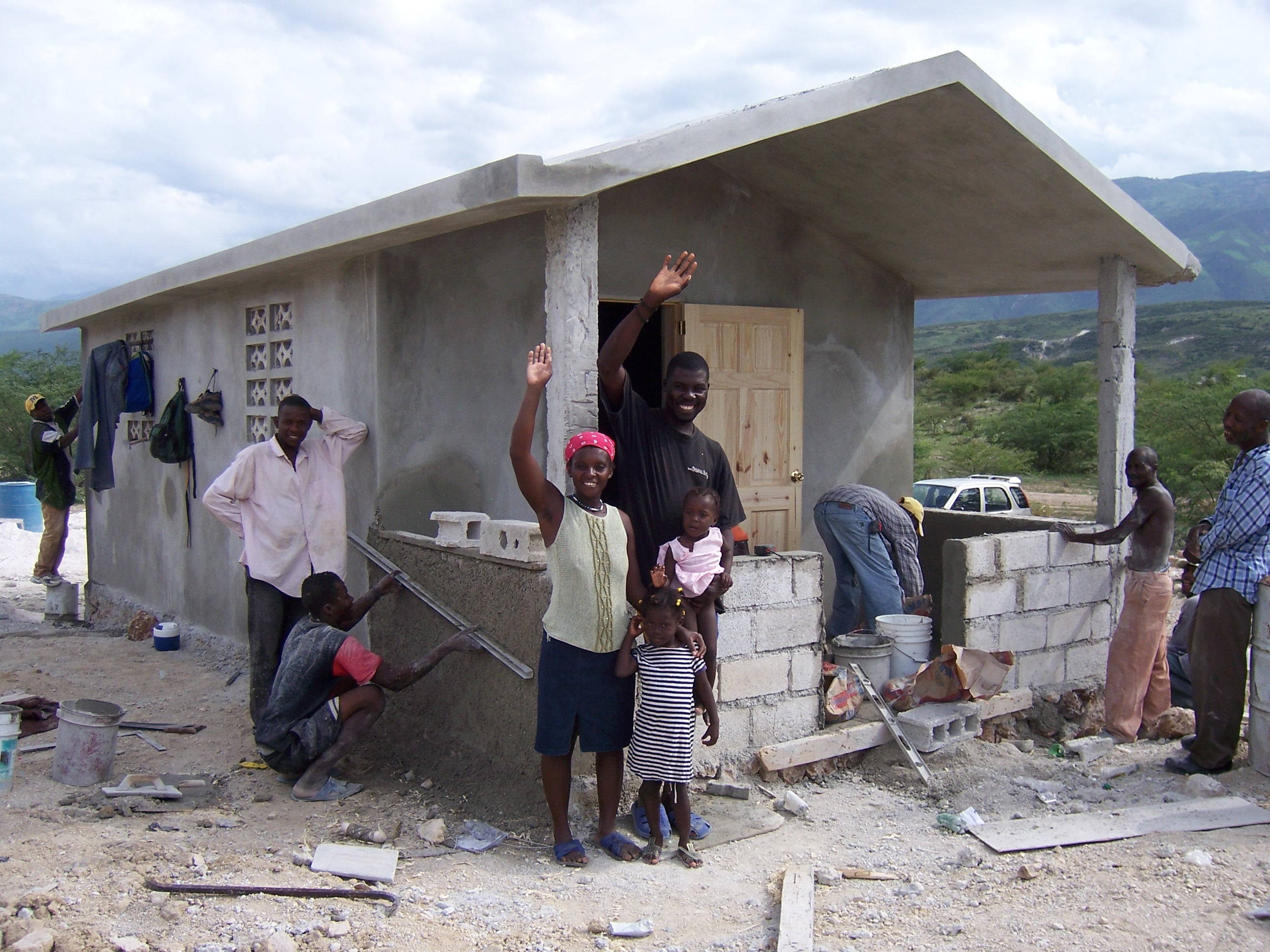 | front of their new home, which is now finished and painted. Egzan is now a turned-on Christian because someone cared enough to bless him, Jessline, and their two children with this new house and furniture! |
