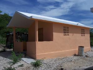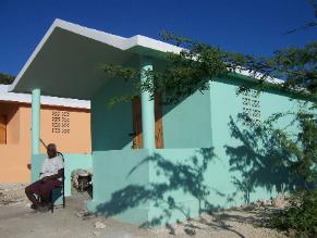 | Antine's new house...the envy of the village. Now they all want their houses painted this color! Antine was homeless because her little mud hut had caved in. |
