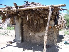 | (Right)The tiny stick and mud hut where Egzan and his family of four did live. |